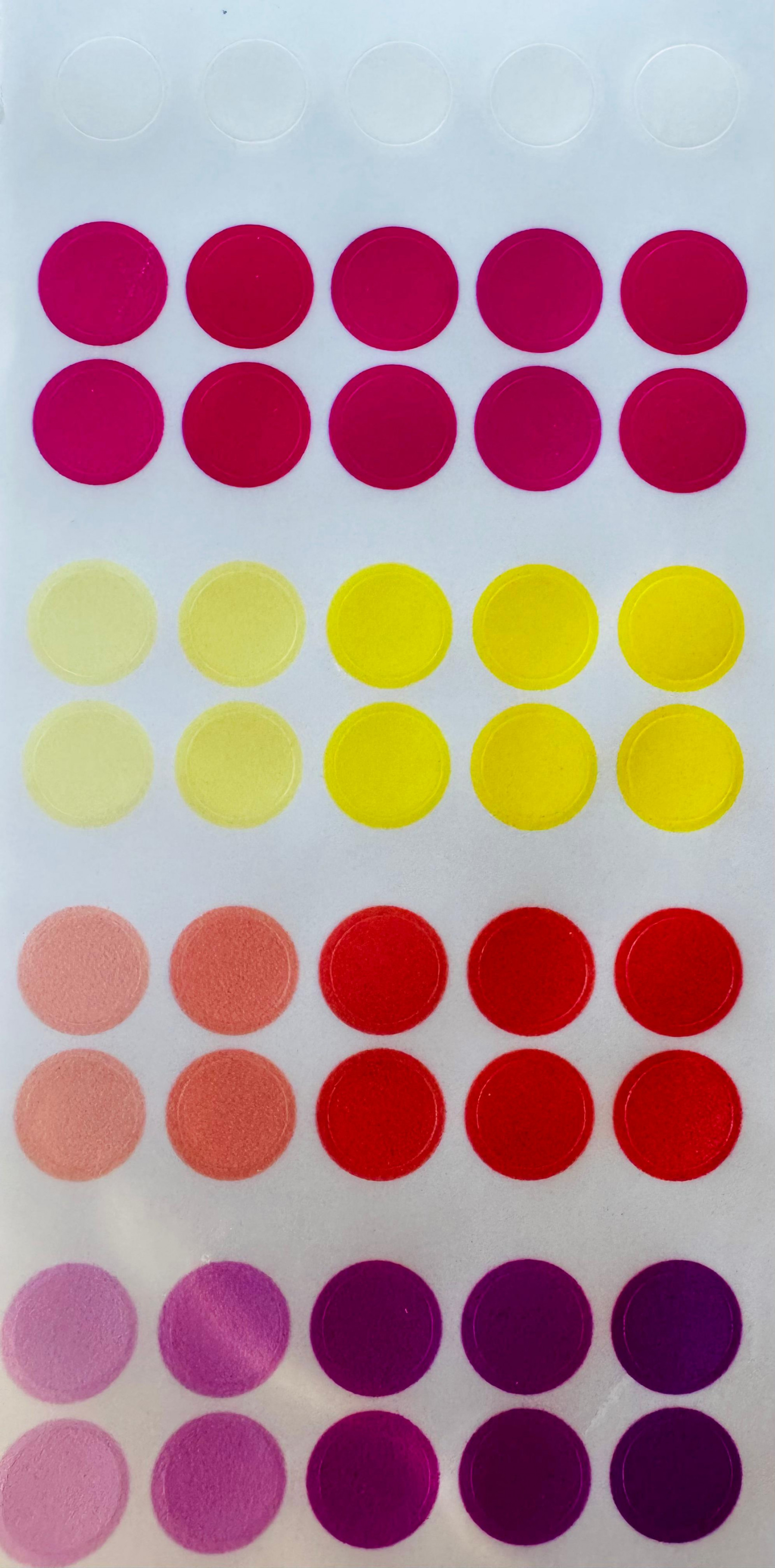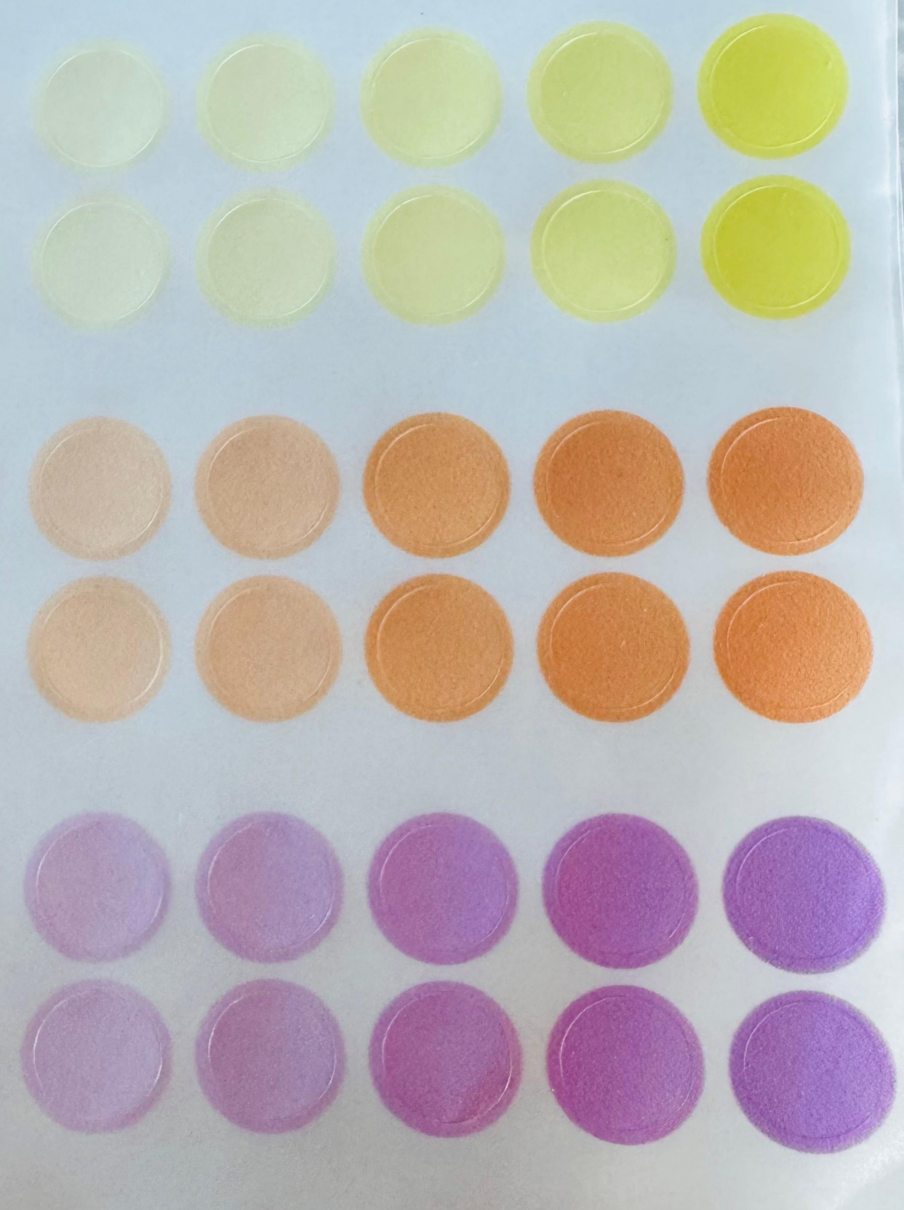 Obréias multicoloridas para aplicação em lentes com diferentes tonalidades
